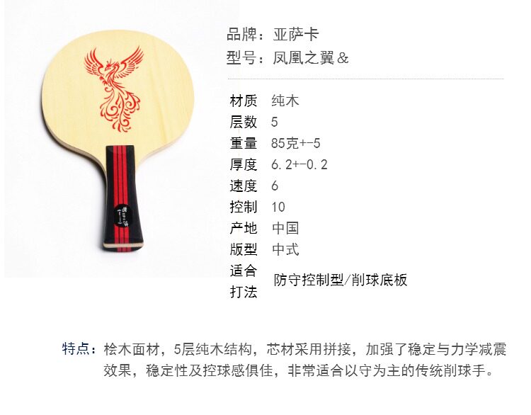 Азака настольный теннис ракетка нижняя доска оборонительная арка управления шарикообразными шариковые коттедж Pure Wood 5 слой Прямая плата Горизонтальная плата