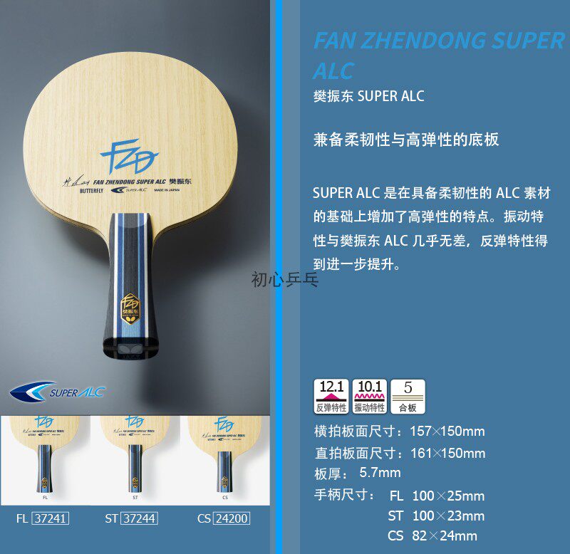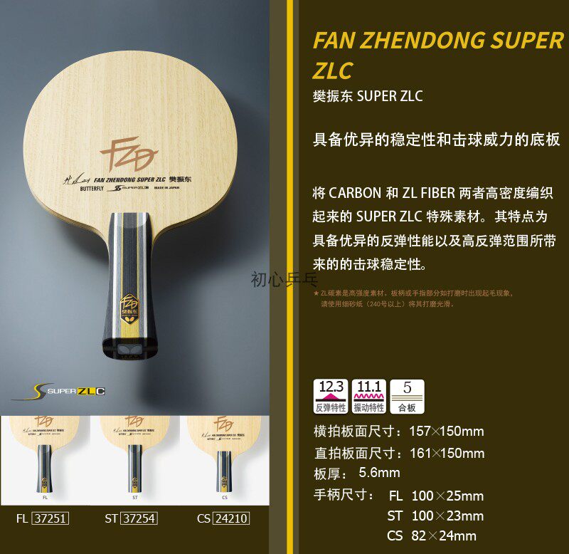 Аутентичная лицензированная бабочка бабочка ракетка вентилятор Zhendong Alc Super Salc Carbon ZLC Fiber CNF Деньная пластина