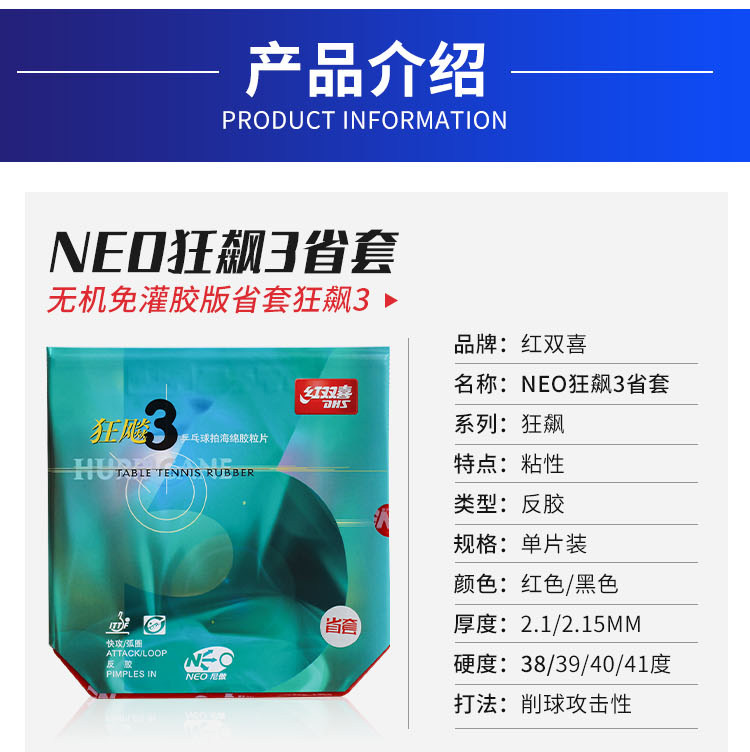 Красный двойной счастливый настольный теннис Полирующий нео -набор глянцевый глянцевый 3 хлопок.