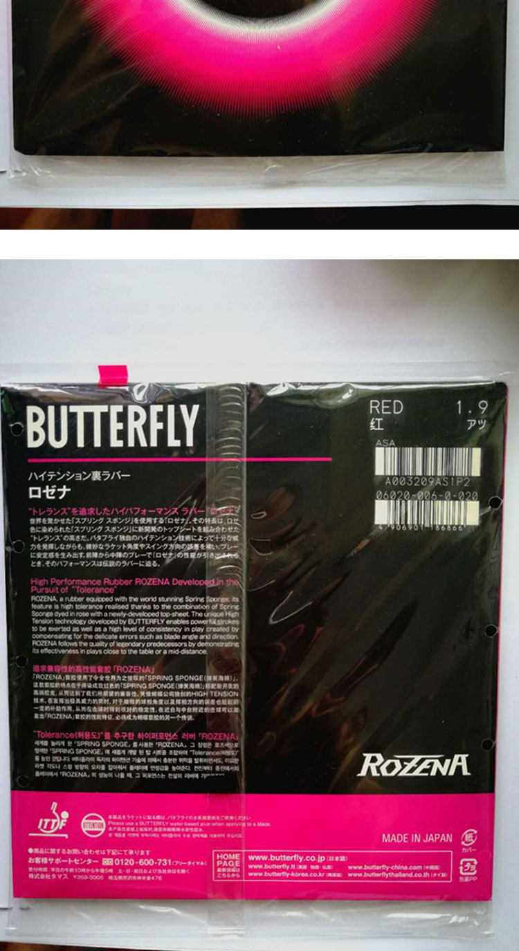 Японская версия вяжущей резины Butterfly ROZENA. ROZENA высокоэффективная розовая обратная резиновая крышка.