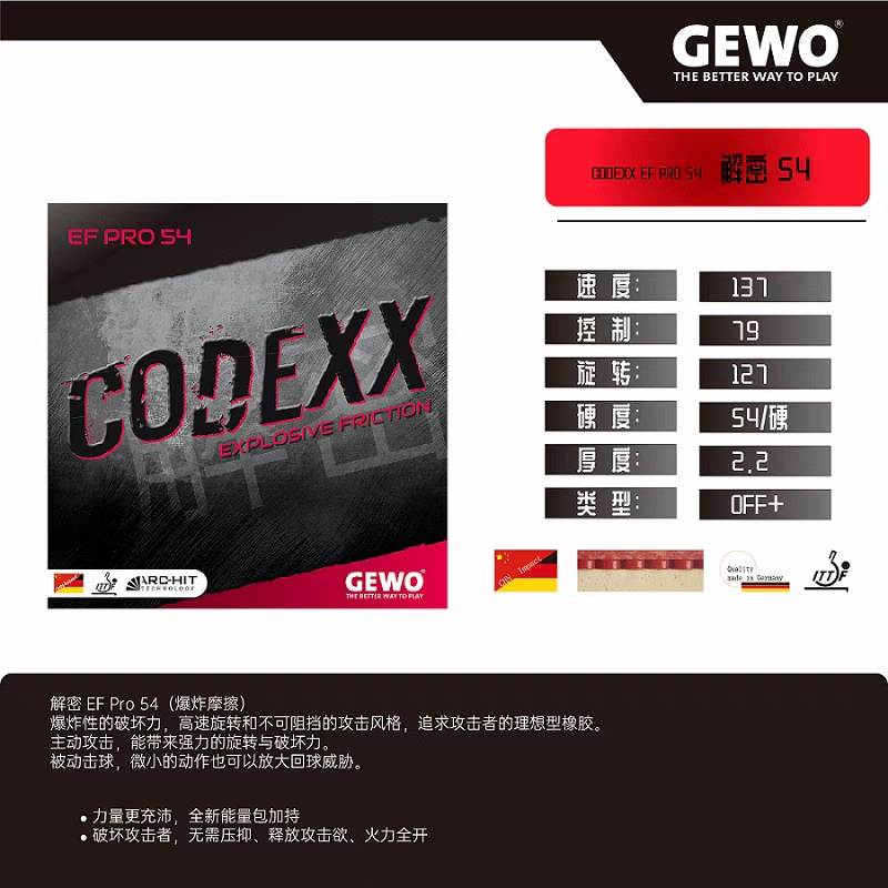 Германия еврея Gewo Decryption 54 Настольный теннисный костюмы дешиптация 54 Дешифрование 52 Вязкость положительная рука Внутренняя энергетическая резина