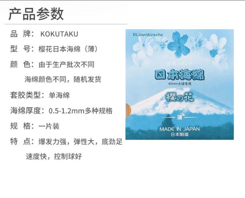 Sakura Table Tennis Single Sponge Sponge Японская губка тонкая губчатая длинная клей клей, положительный клей синий сингл -клей японский производство
