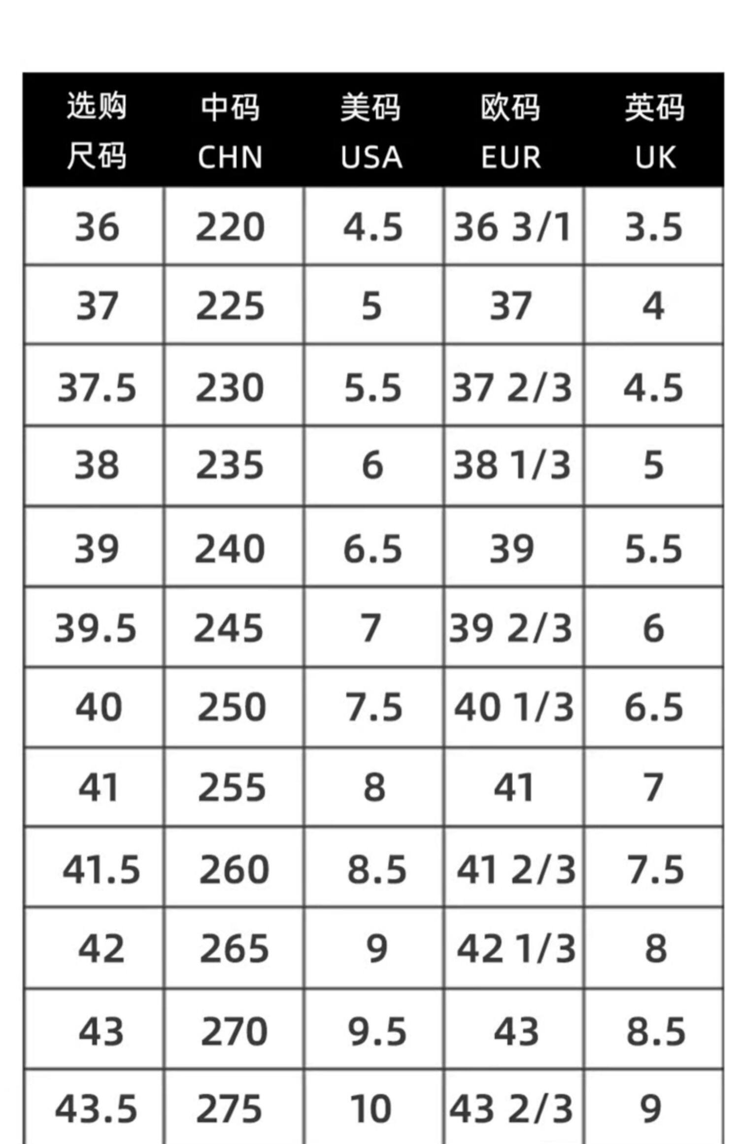 | Размер обуви: | 36 /220, 37/225, 37.5/230, 38 /235, 39 /240, 39.5 /245, 40/250, 41 /255, 41.5 /260, 42/265, 43 /270, 44 /280, 43.5 /275, 44/280, 45/285, 46/295 |