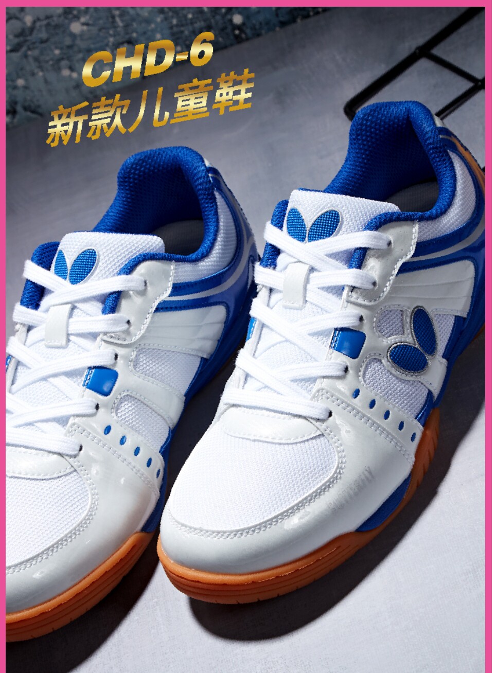 Детская нескользящая обувь для настольного тенниса с бабочкой, синяя удобная обувь, семейный стиль