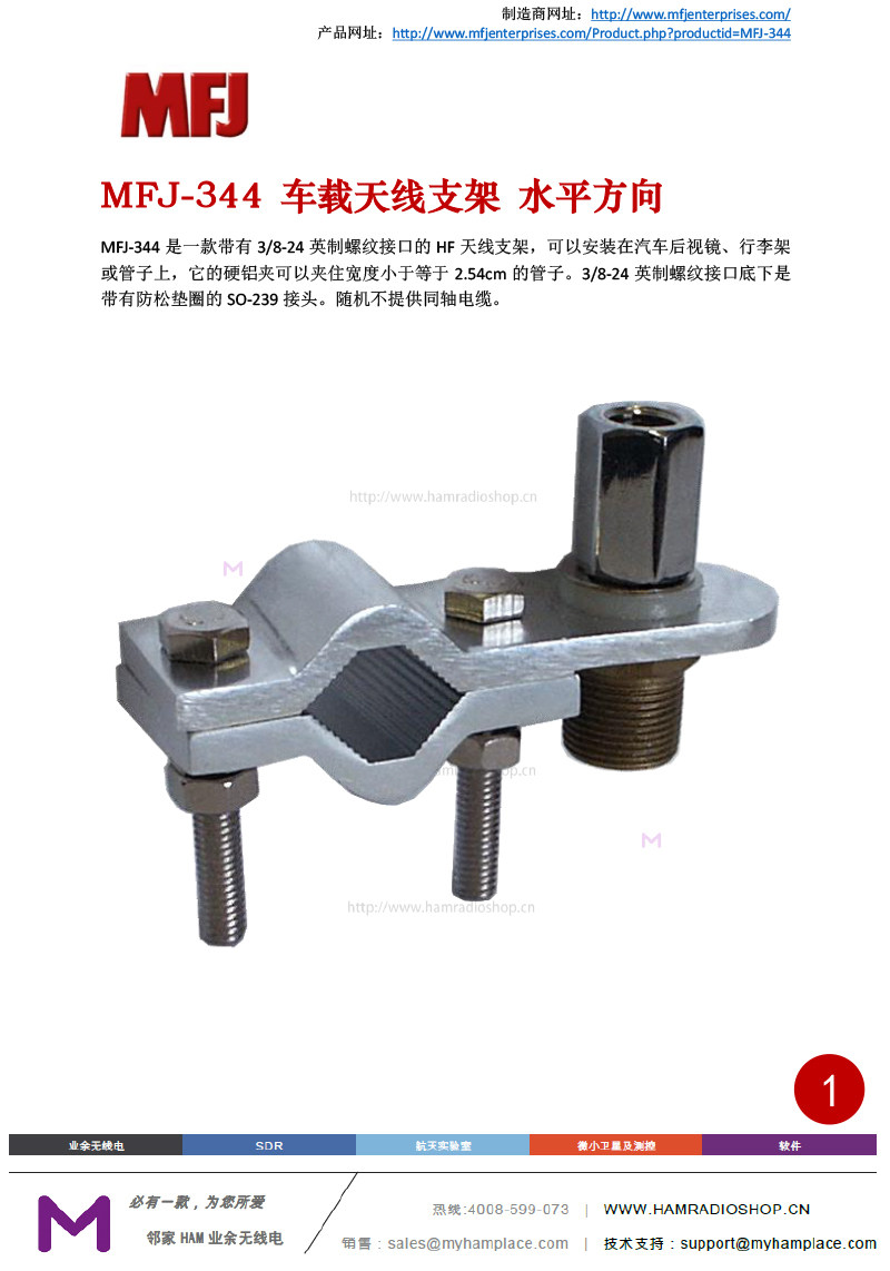 MFJ-344 автомобильный антенный кронштейн горизонтальный направление
