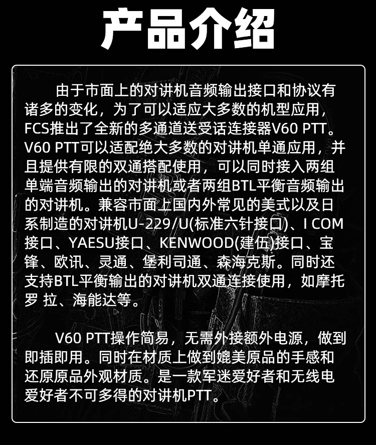 Диалог PTT Новый список продуктов FCS V60 Много -функциональная двойная тактическая гарнитура PTT PRC148 152