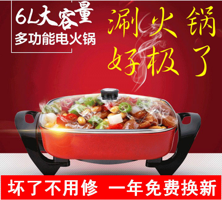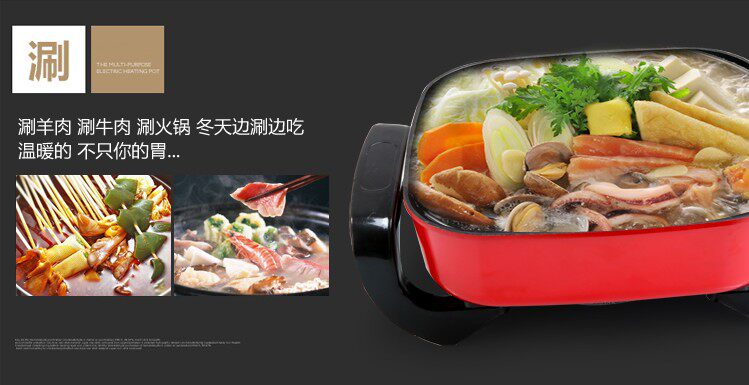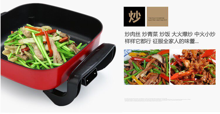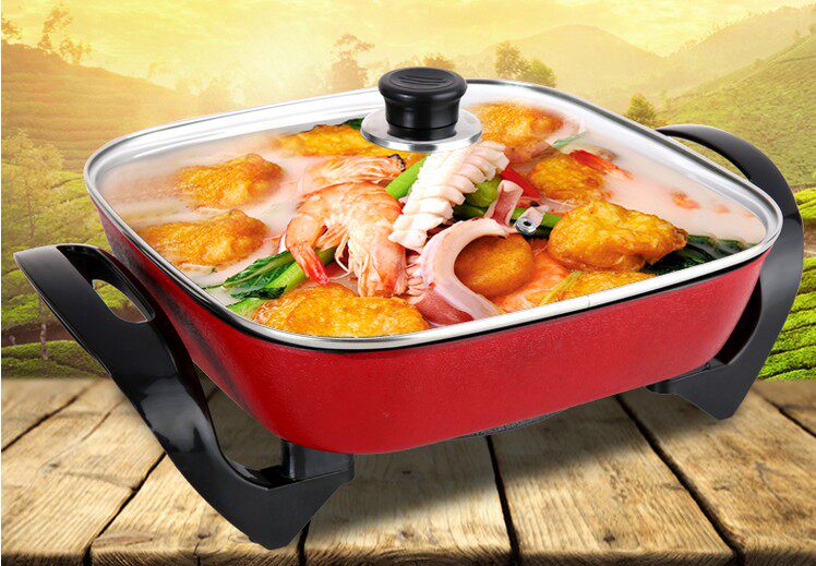 Многофункциональный электрический горячий горшок Корейский квадратный горшок Электрический горшок, горячий горшок, квадратный горшок, невисцирный электрический кастрюль, электрическая плита, электрическая плита для здоровья кастрюли.