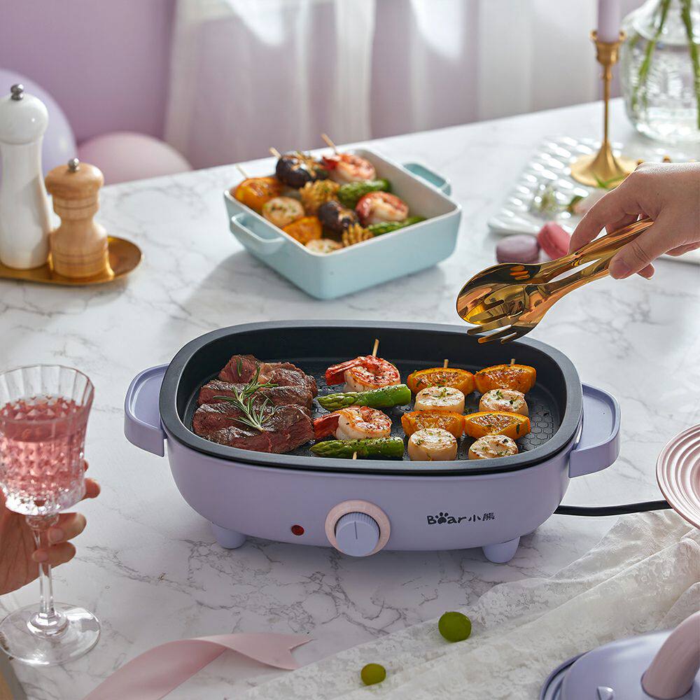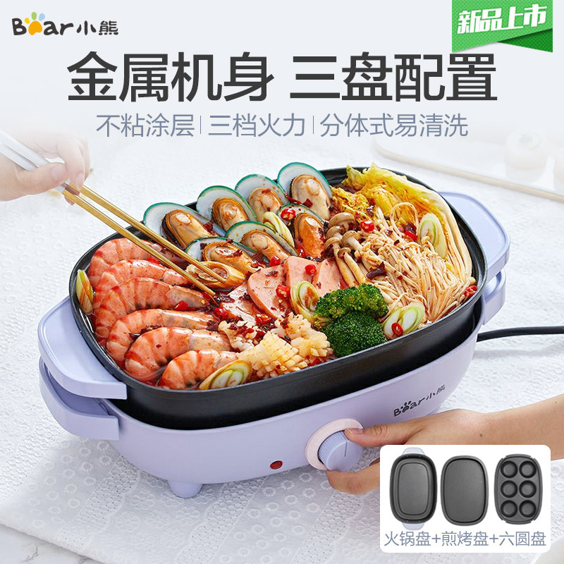 Маленький медведь электрический горячий горшок мебель многофункциональный дисциплина барбекю интегрированная горшка сетка Крестная корейская пластина Электрическая пластинга Электрическая пластина запеченная рыба