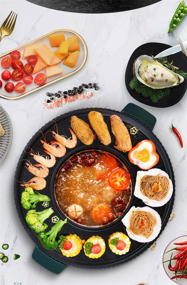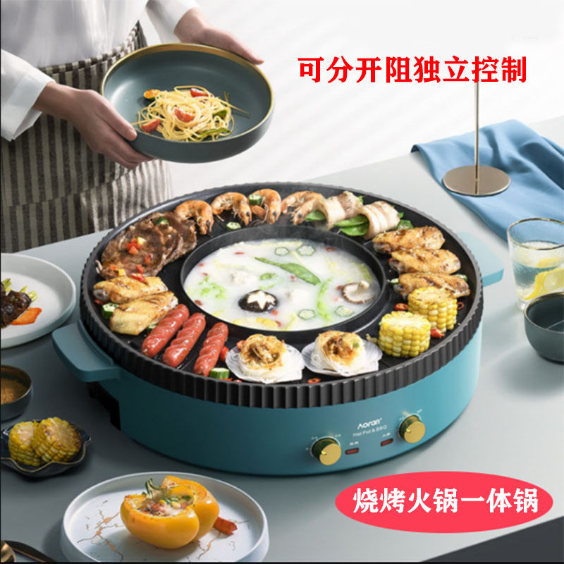 Щетка на гриль на гриле горшок с мясом Горячий горшок, барбекю, запеченное горшок, два -один горшок, запеченный и запеченный дом Маленькая мультифункция может быть подключена в кастрюле