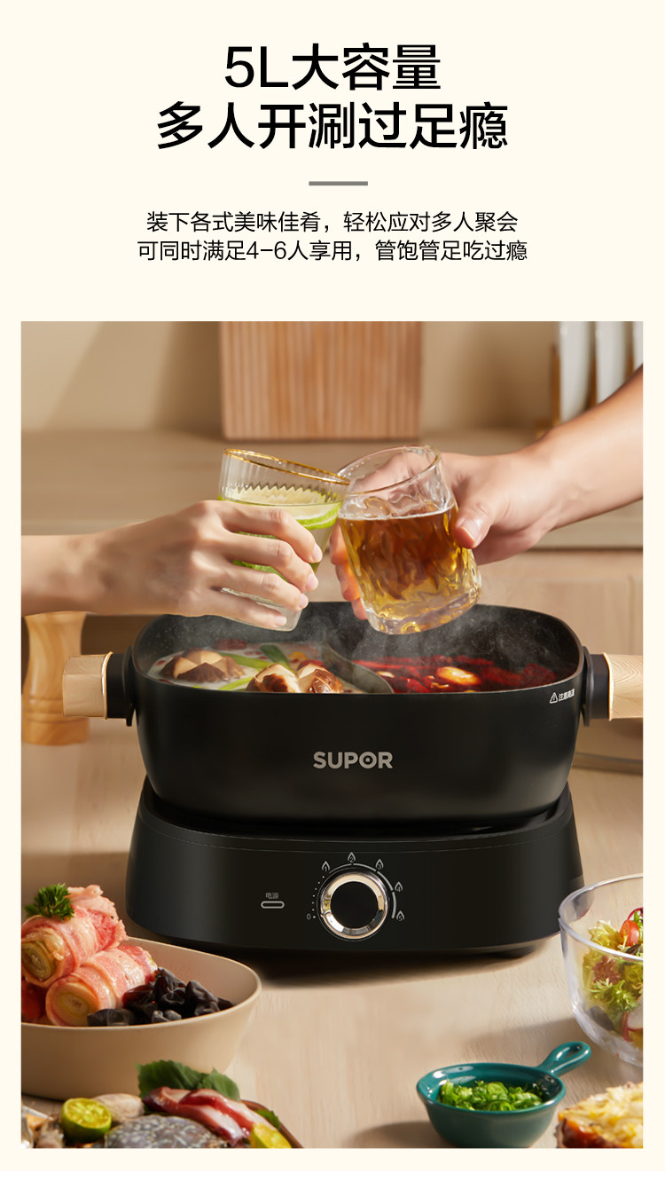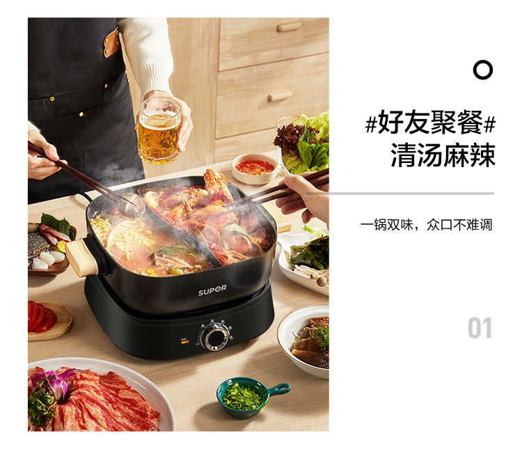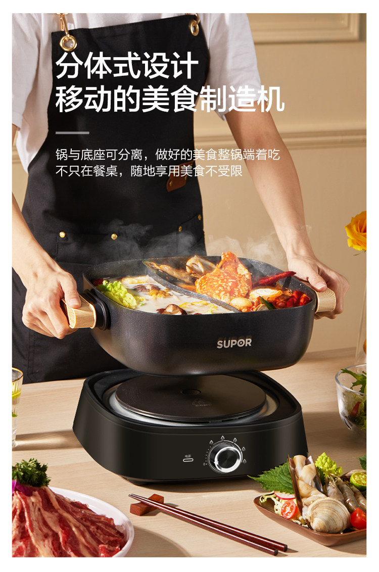 Supor 鸳 Много -функциональный All -In -One Pot Homeving Split Hot Hot Pot Electric Pooking Pot Dormitory Dormitory Pot