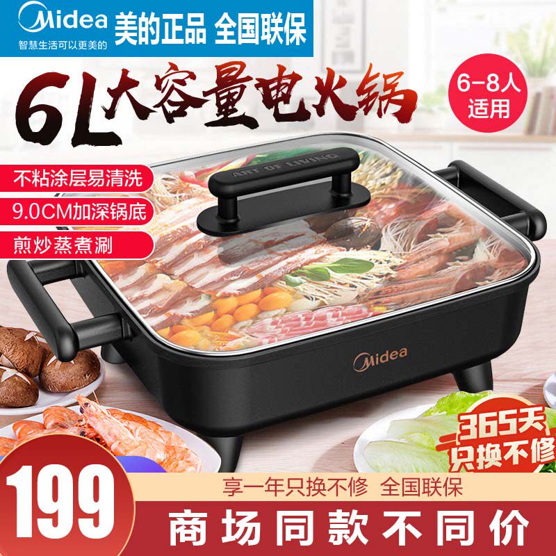Электрический горячий горшок Midea Homefunctional Electric Hot Pot Electric Plick Smreat -Fry Pot Electric Plork Prouber Plick -Fry Плита, без липкого кастрюли, один горшок, многопрофильное использование
