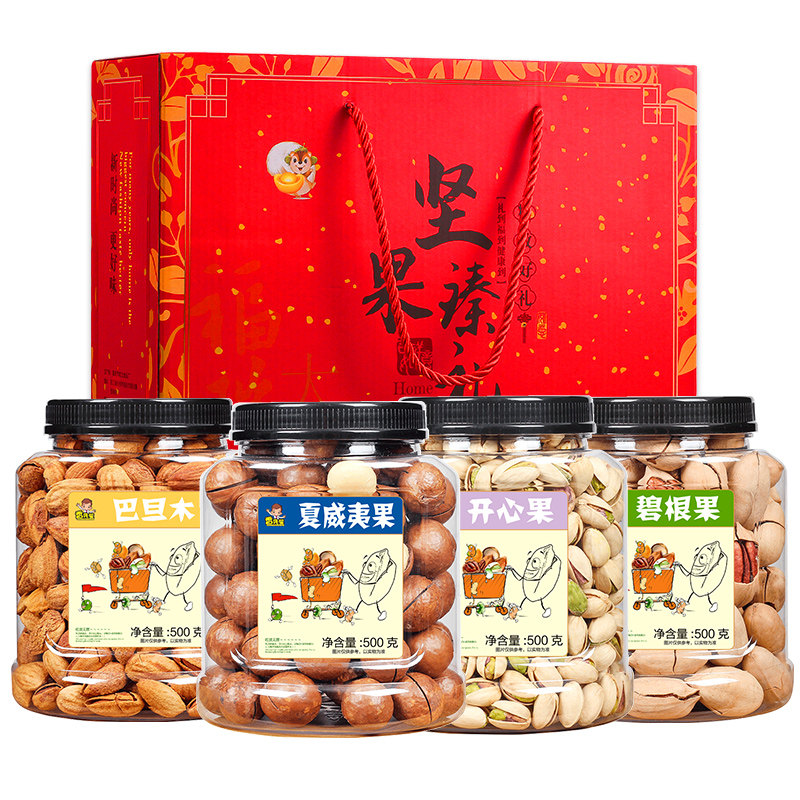- Счастливые фрукты+зеленые фрукты+xia guo+bayanmu = 2000g (4 банки подарочных коробок)