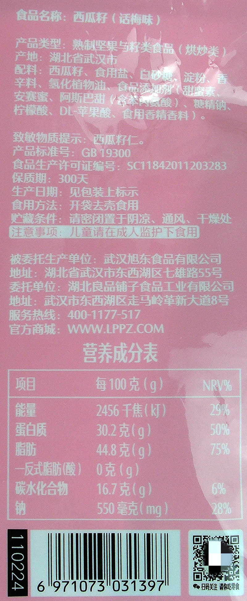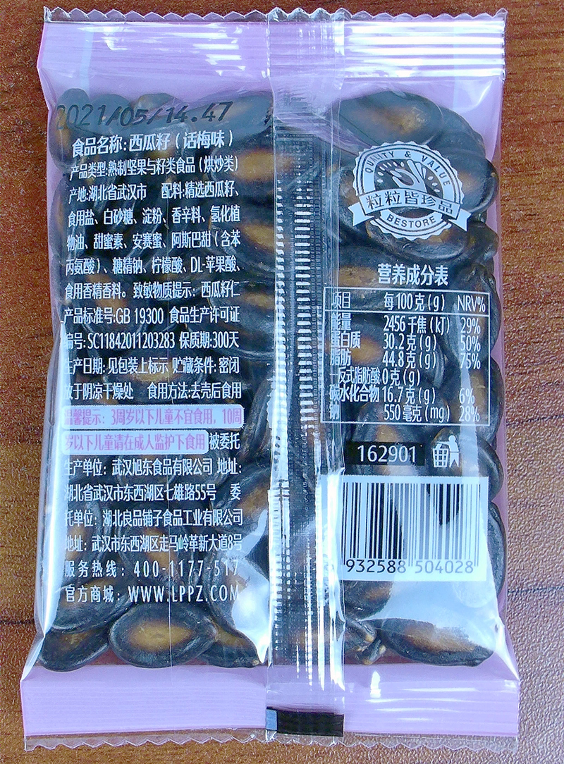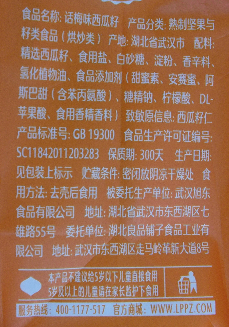 良品铺子 Словами семян арбума сливы 650G, Mei Flavors of Meron Seeds Office Casual Cackaging Square Sag Sack Sack