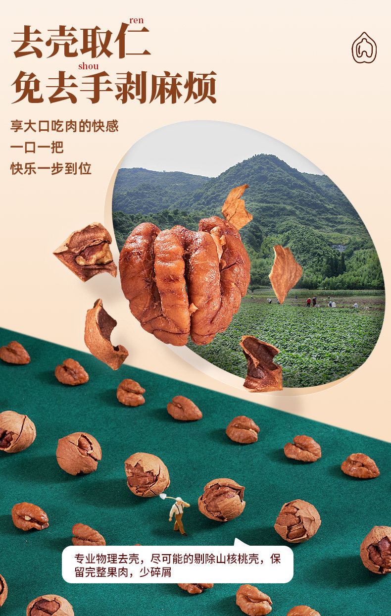 Каждый фрукт 2023 Новые товары Lin'an Shanyama Walnut Ядра Независимая маленькая сумка мгновенная маленькая ореха из орехового ореха детские закуски