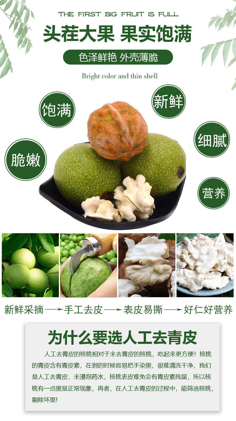 Spot 2021 Свежие грецкие ореховые орехи до зеленой кожи зеленой кожи сырые грецкие орехи, тонкая персиковая тонкая кожа нежные новые спагнические новые товары