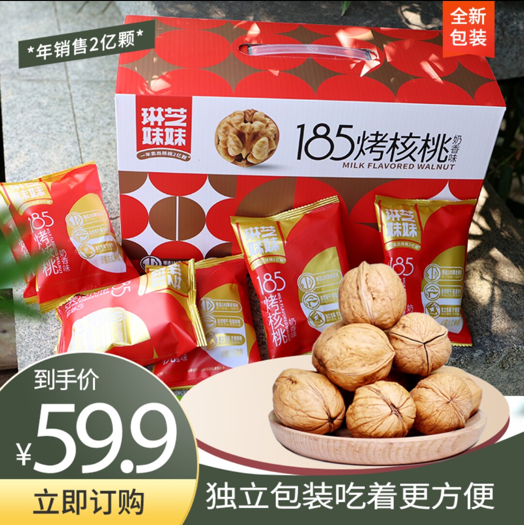 Линзхи сестринская бумажная кожаная ореховая ореха маленькая упаковка Аутентичная Синьцзян 185 Кремовая аромат Тонкая кожа спелая ореховая ореховая подарочная коробка