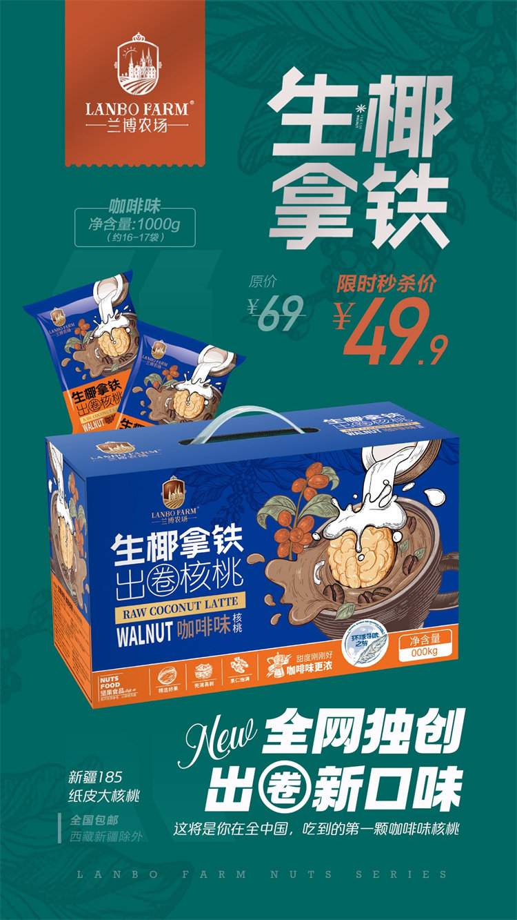Ланбо Ферма бумага кожа грецкий орех сырой кокосовый кокосовый вкус