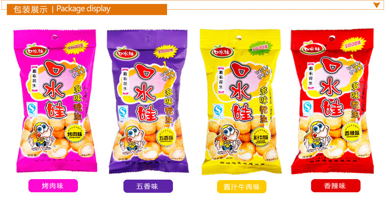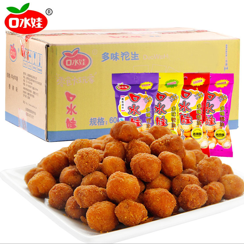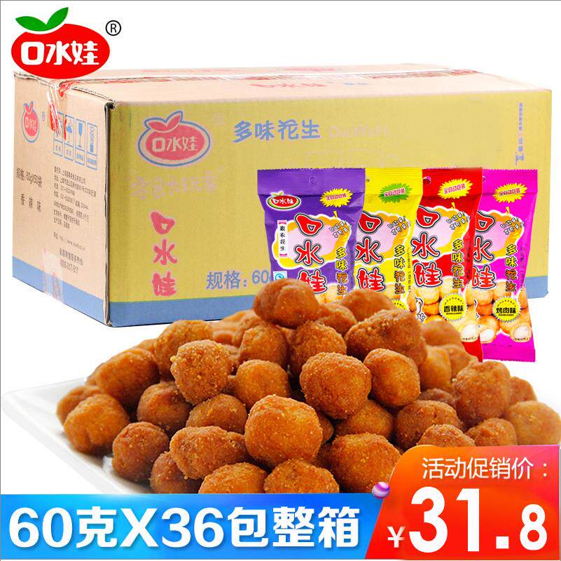 口水娃 Много -арахисовый арахис 60 г*36 мешков с арахисовыми арахисовыми арахисами и пряных говяжьих районов для барбекю Случайные закуски закуски