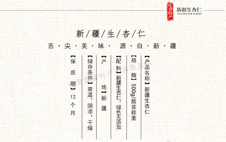 Сырой миндальный оригинальный Sheng Scinjiang Specialty Shell Shell 500 г орехов Южный миндаль