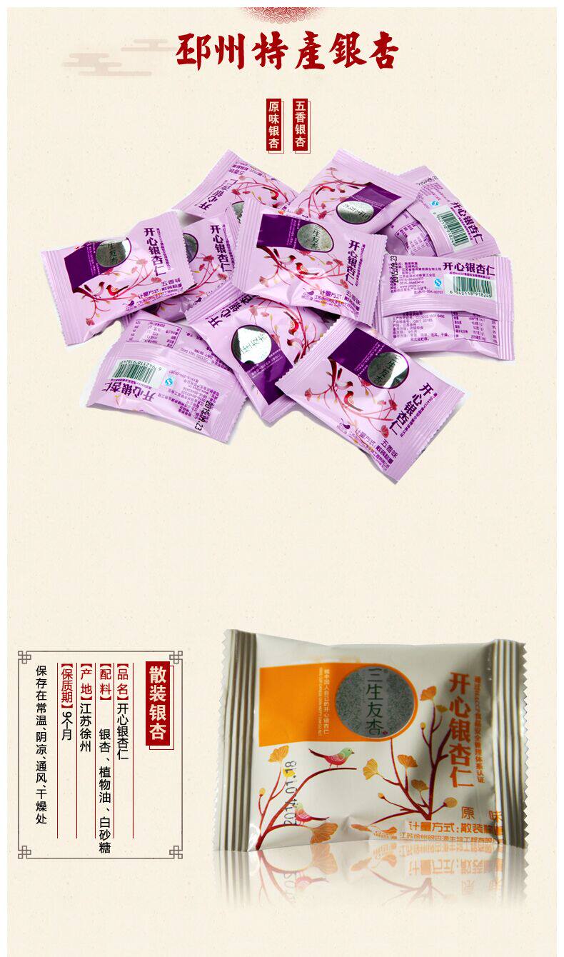 Три Shengyou Xingxin Ginkgo Ginkgo Ginkgo Fruit Leisure Scurcure Четыре вкуса вкуса - 100 грамм
