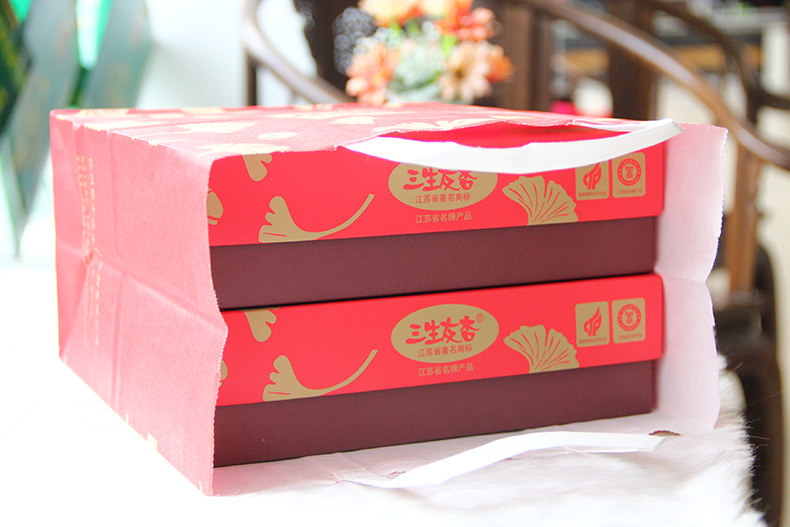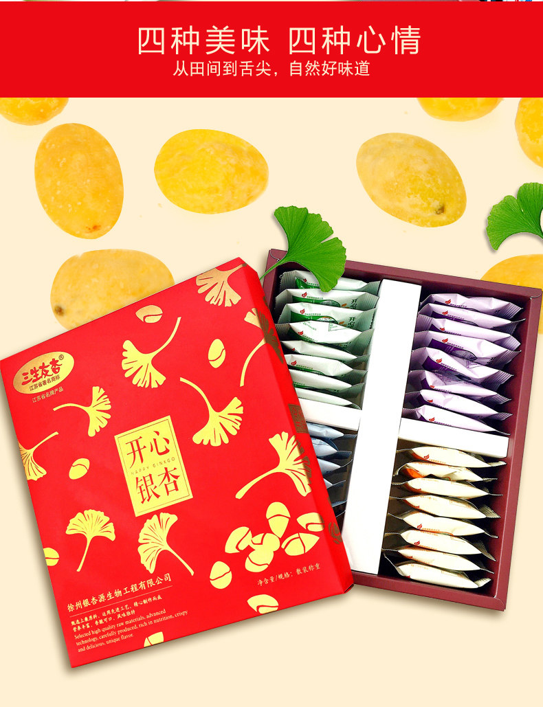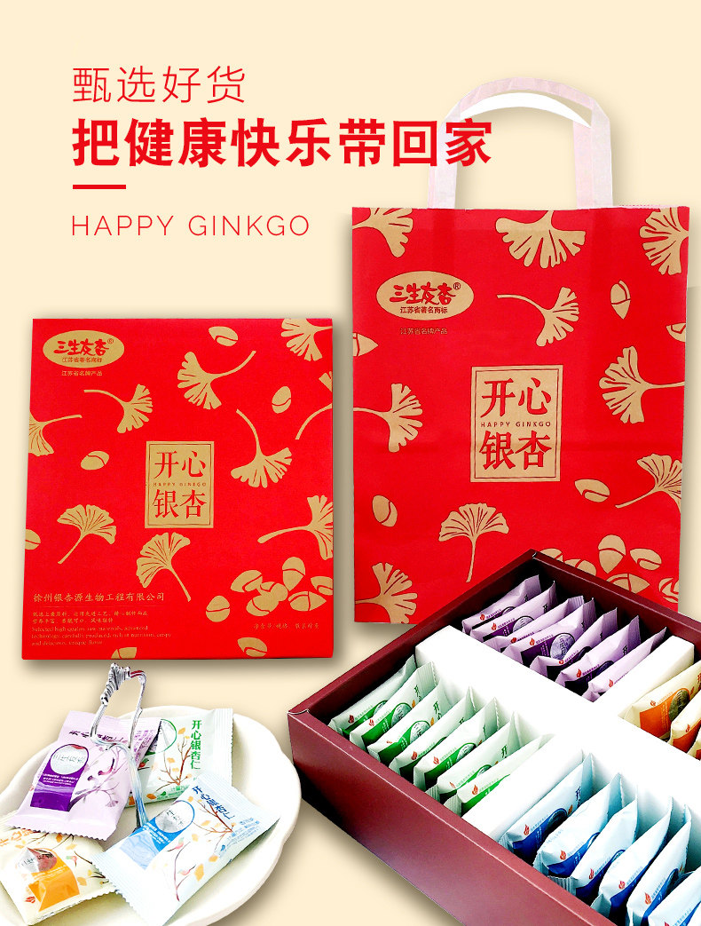 Каждая коробка этого гинкго и миндаля - четыре вкуса. Взяв две коробки, чтобы лично раздать подарочные пакеты.