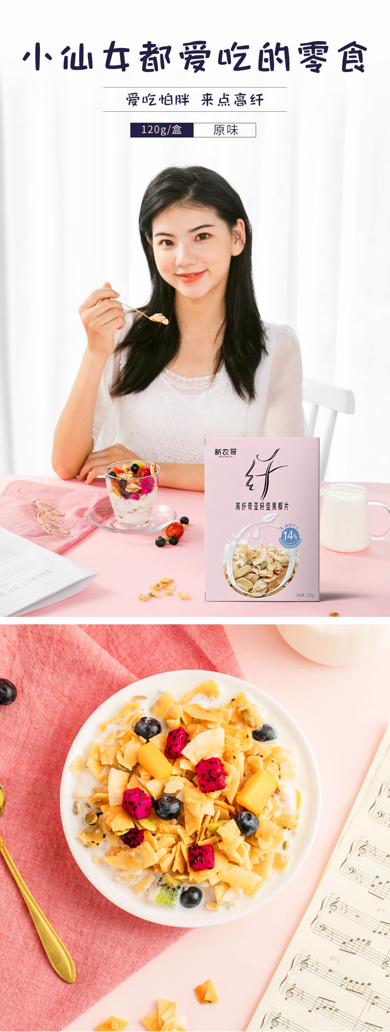 COFCO SXINNONG Брат Чиа Семя Семя с высоким волокном Кокосовый орех 120 г орехи закуски для выпечки завтрак завтрак на завтрак повседневные закуски