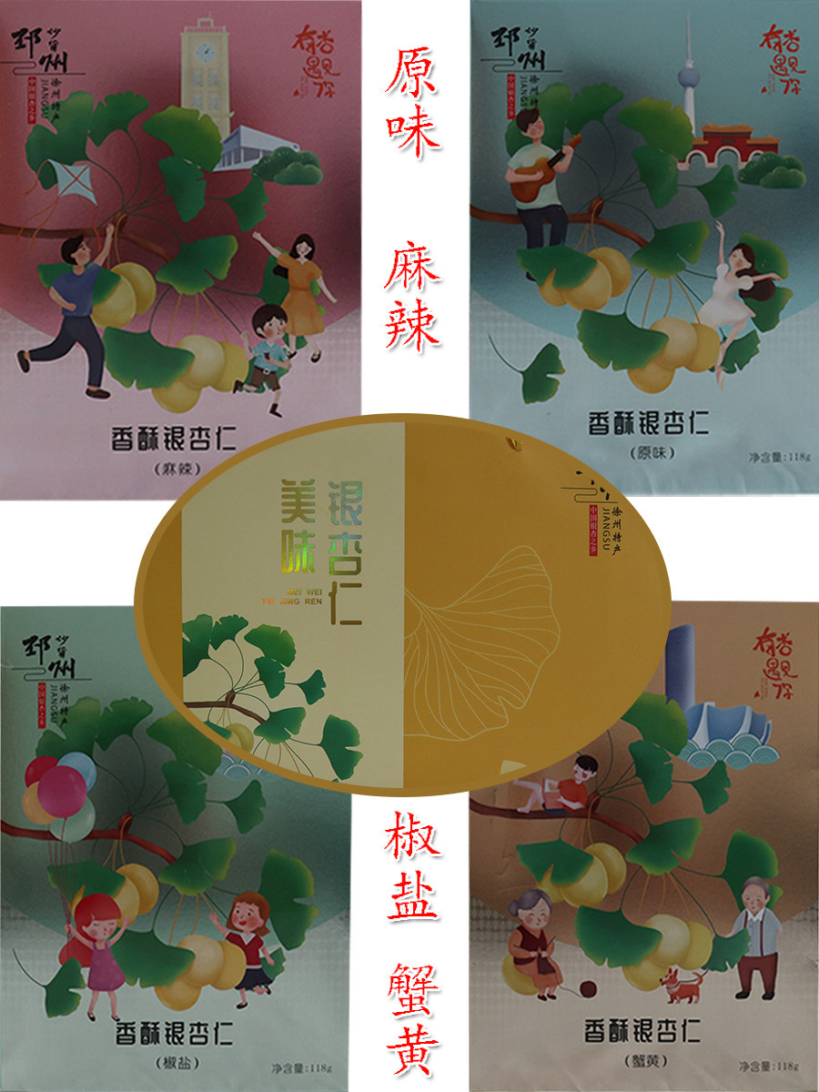 Хрустящие гинкго и миндальные мгновенные кайсин Guoguogi Summi Beil тушеные закуски 4 вкуса.