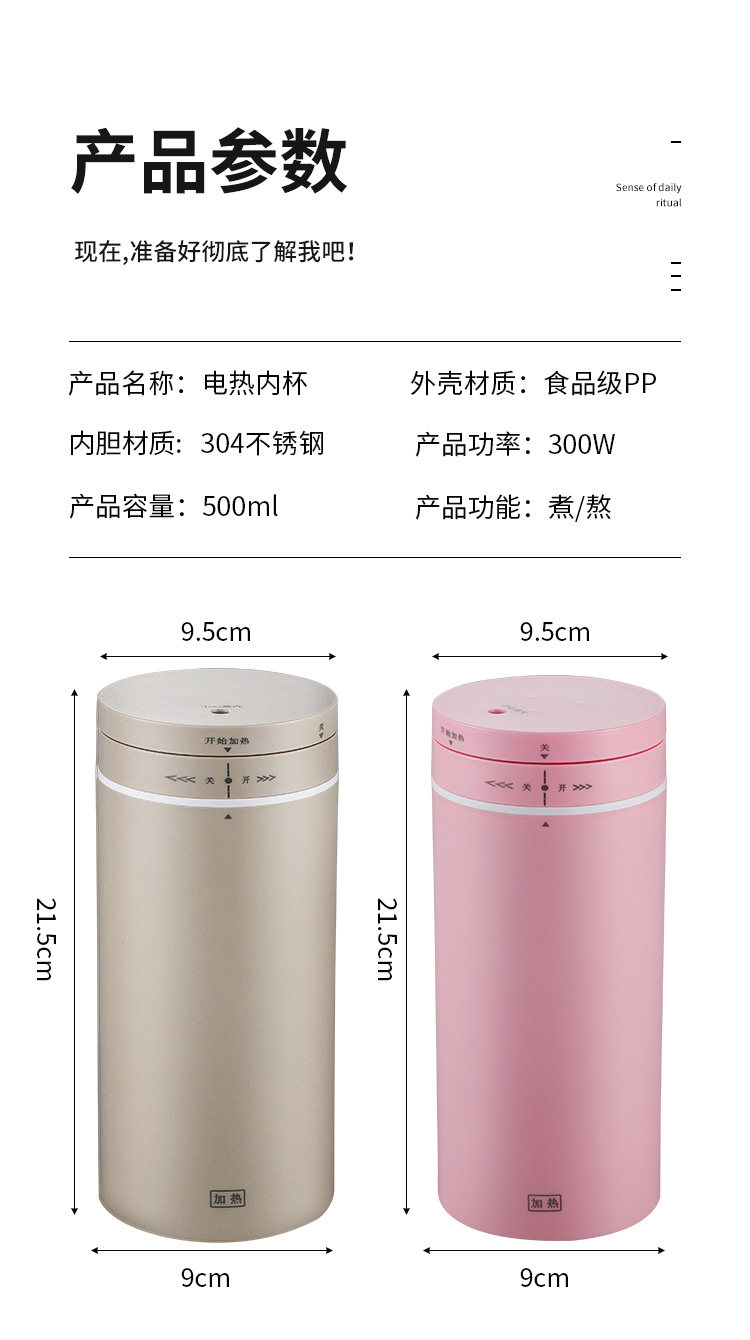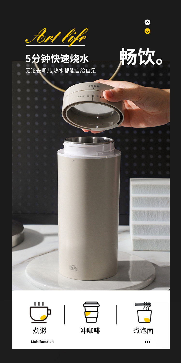 Портативное путешествие может быть отрегулировано, чтобы согреть заглушку -чайник -в тепло -бурновой чашечке водяной чашки общежития 500 мл.