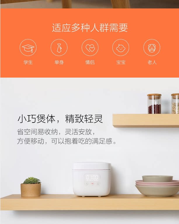 Семейство Xiaomi Mi Маленькая рисоварка 1,6 л. Обнаруженную большую мощность рисового горшка Mijia Полный автоматический рисовый COO C1