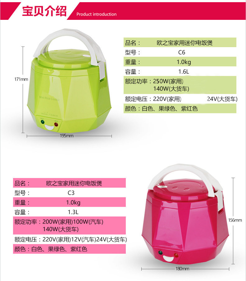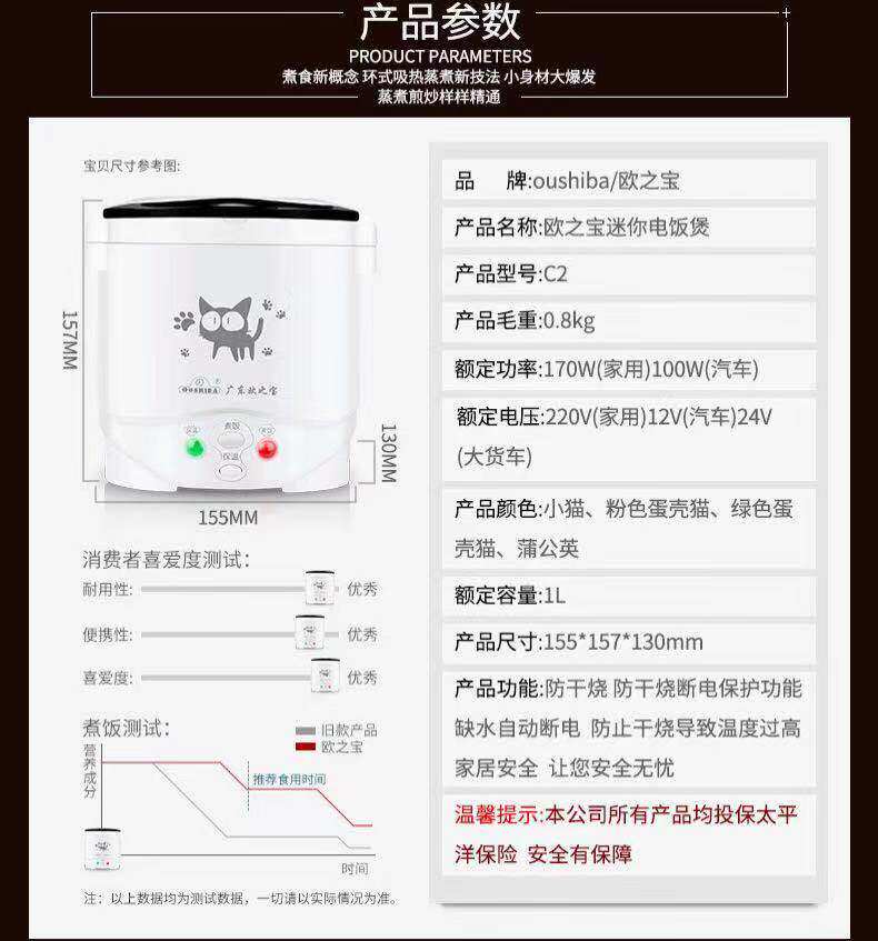Маленькая портативная универсальная рисоварка, 12v, 24v