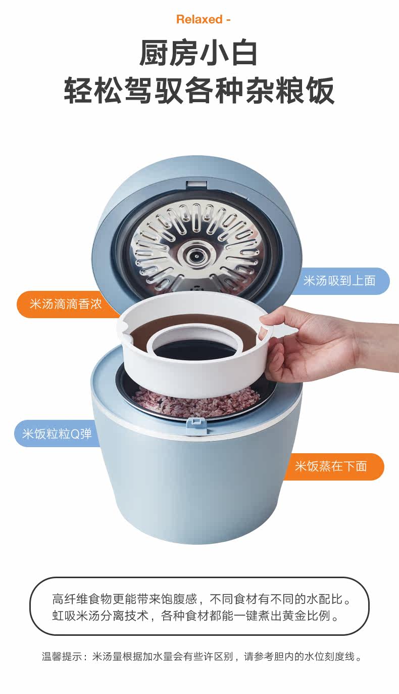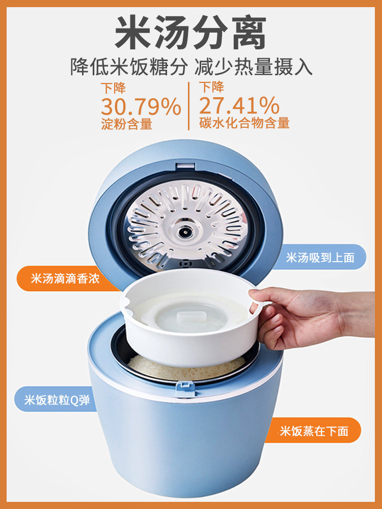 火鸡 Интеллектуальная легкая пища меньше сахарной рисоварки дома мини -1 человек, маленький 2 л, чтобы уменьшить сахарный рис, отделенный для здоровья горшок для здоровья