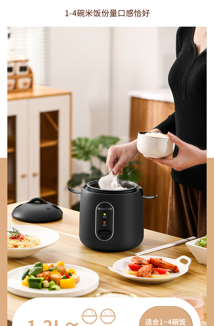 Chigo/志高 MN12-F Мини-рисоварка для общежития, домашняя, малой мощности, на 1-2 человека, рисоварка для приготовления на пару, подарок