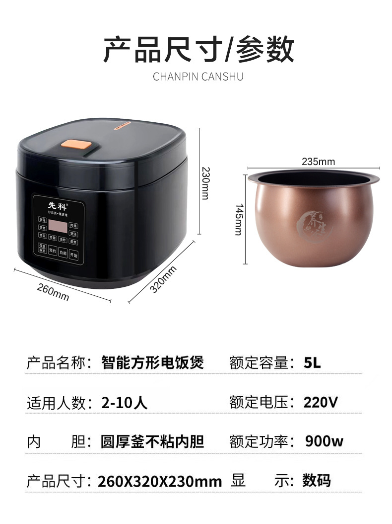 Xianke 5 -Литер Smart Rice Pligert Домохозяйство много -функция, большая способность к большой капризной капельной каша