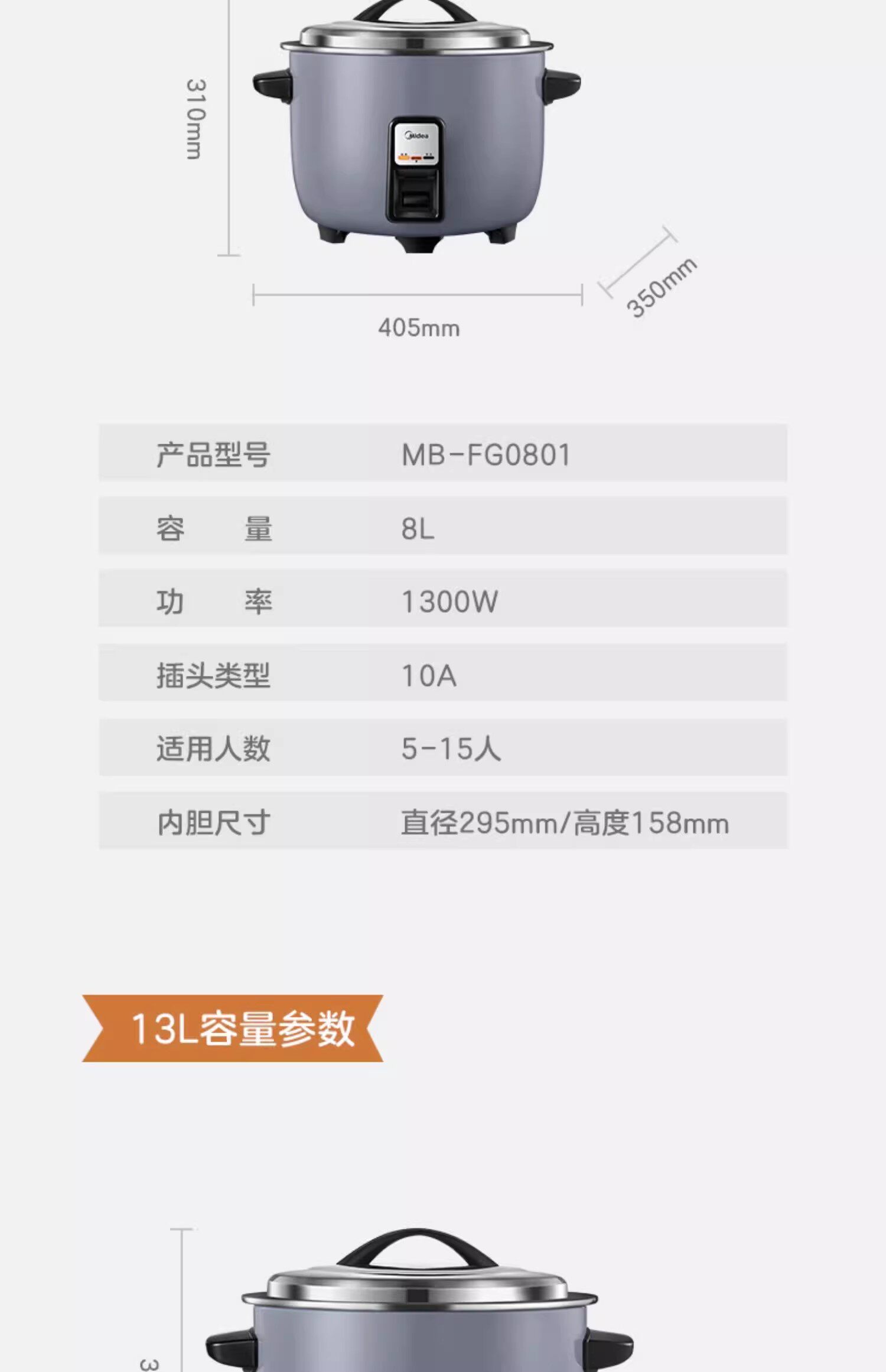 Midea Commercial Rice Pirter 13l Liters 8L Большой -каплю