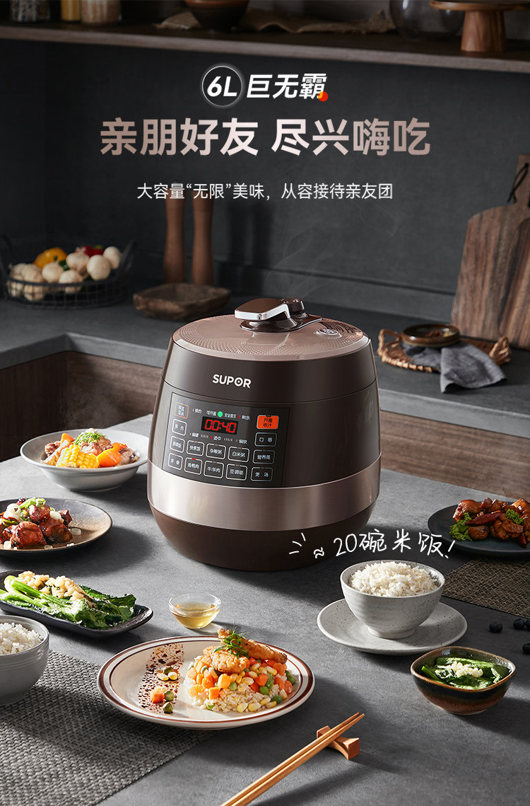 Supor Electric Plick 6l Домашняя двойная желчная рисоварка Интеллектуальная большая мощность с высоким содержанием высокого напряжения с высоким содержанием ролика.