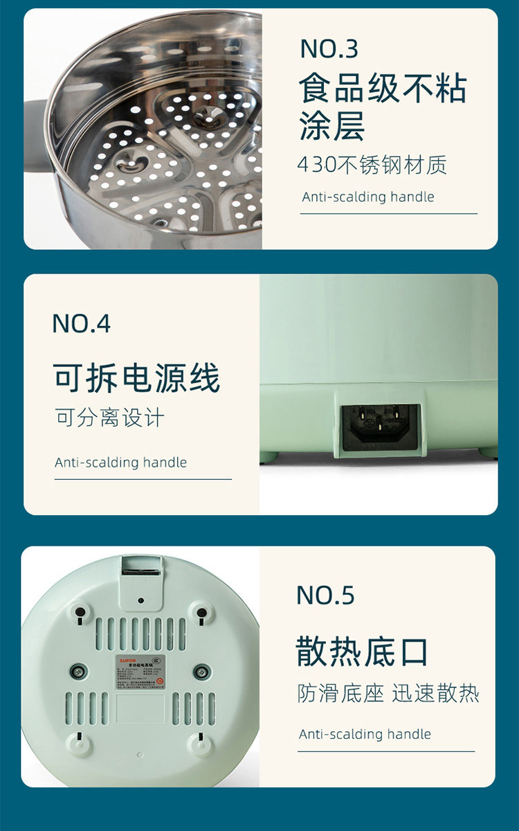 Supor Steamer Homemen Electric Steamer Multi -функция Трех слоя Small Intelligent Automatic Power Off -Power There Roregation Time Pot