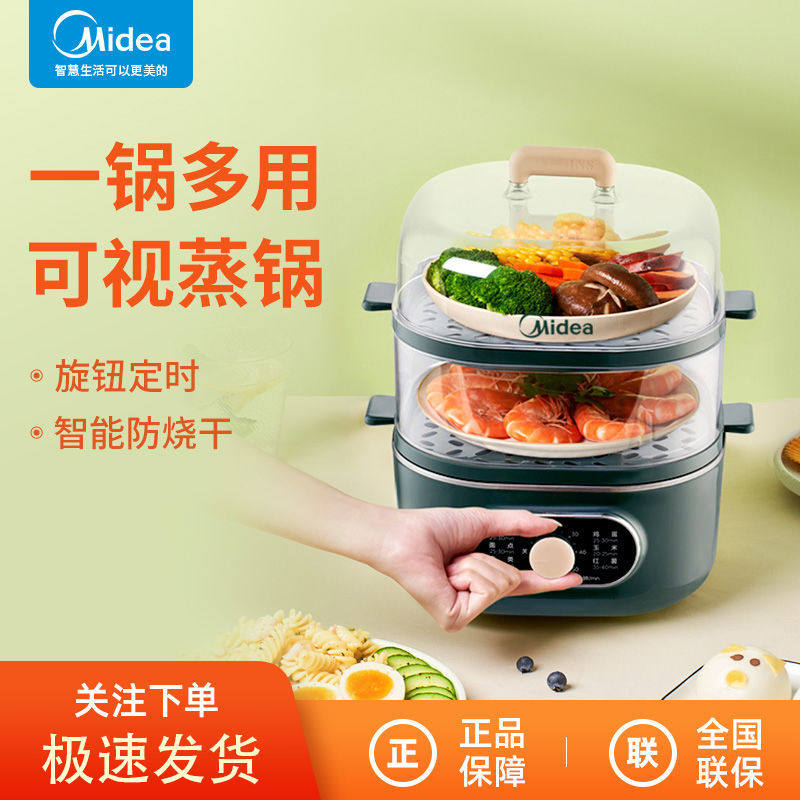 Midea Multi -Spurpose Pot Electric Steamer Home Электрический нагрев горячий горшок Интеллектуальная мощность -офф Двойной слой пароход.
