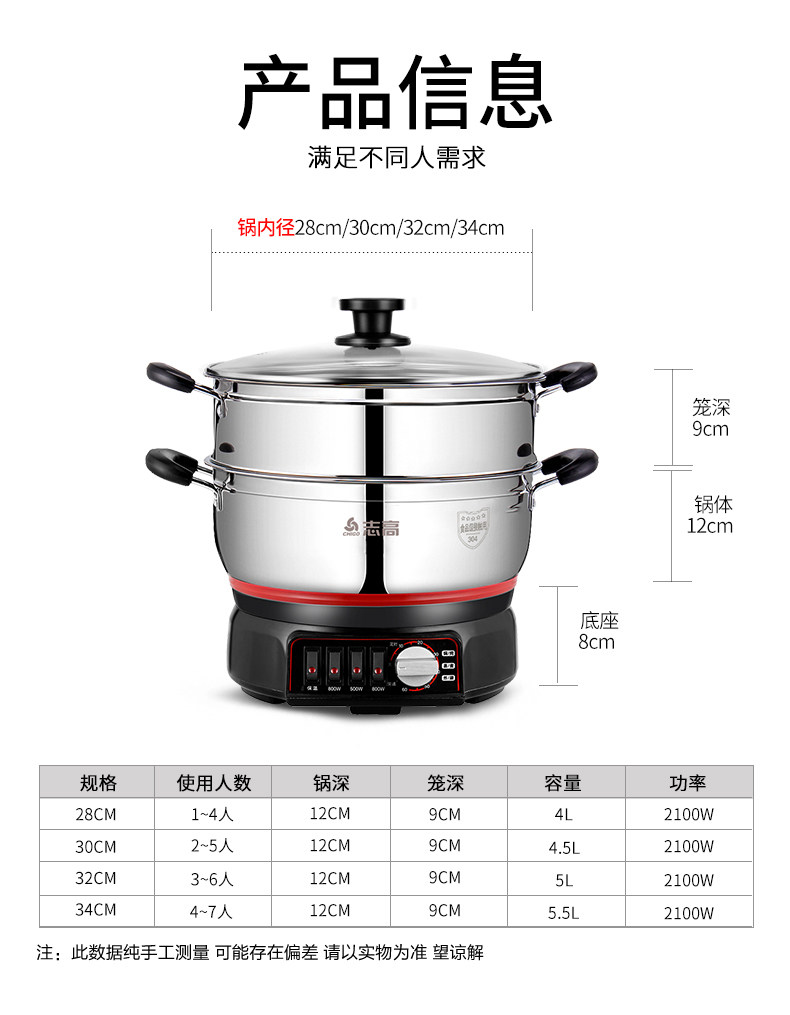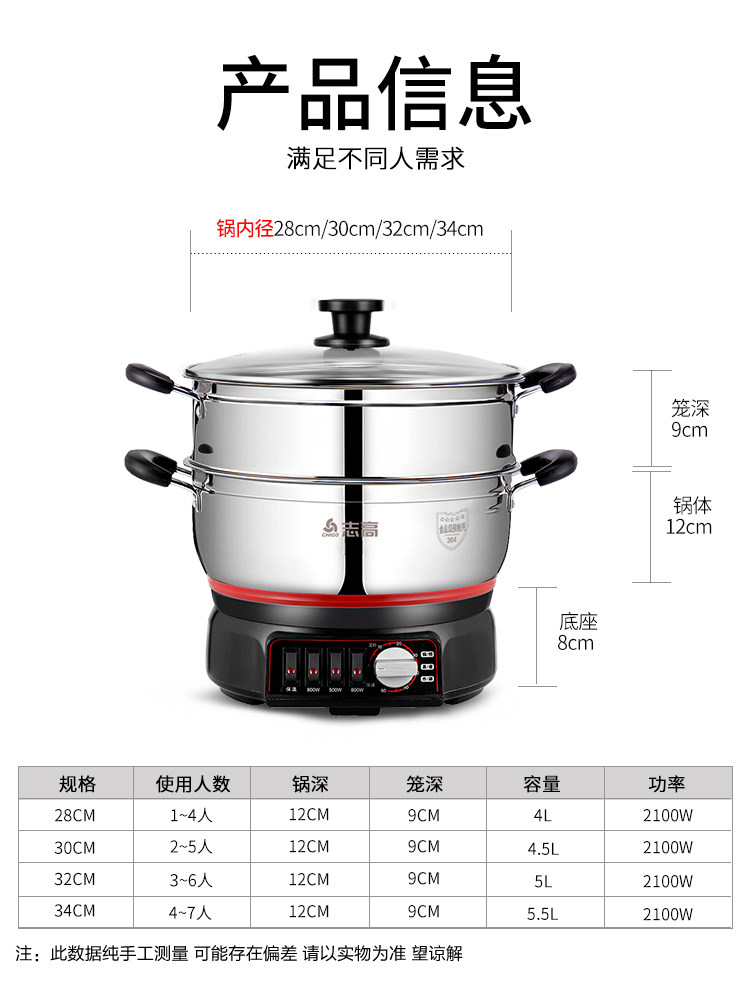 Chigo/Zhi Gao Ding Time Smart Electric Multifunctional Electric Pligert Streed -Stir -stir -Fried Pot