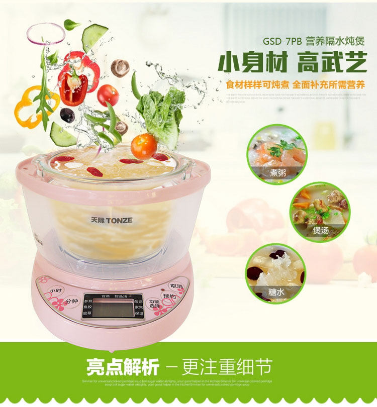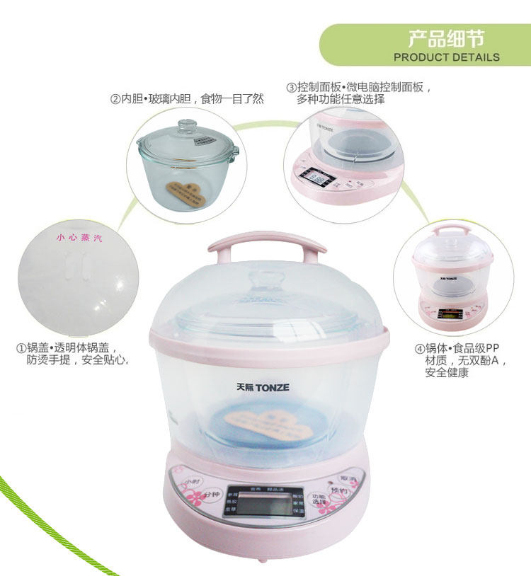 Драгоценные ингредиенты не будут приготовлены с огнем, все они увлажняют. Его дизайнТушеные в водеИ опять100 Вт маленькая мощность, Большая степеньСохраняйте ингредиенты питанияВ то же время, экономия энергии и экономия энергии.