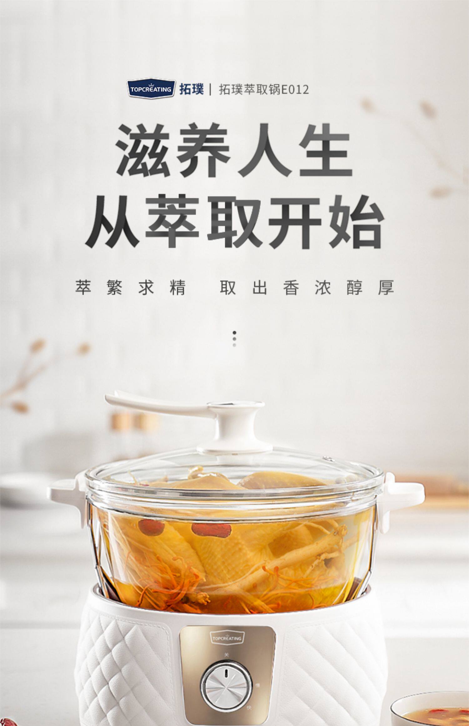 Takuya E012 Home Glass Health Pot Steed Multifunctional Полностью автоматическая суповая сковара медленная тушеная и извлечена