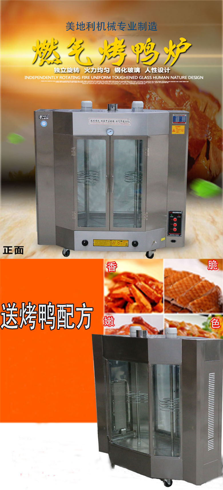 Утиная утиная печь с газовой жареной печью/газовая куриная плита на гриле/24 Жареная утиная машина и вращение птицы Прозрачная печь Прозрачная печь