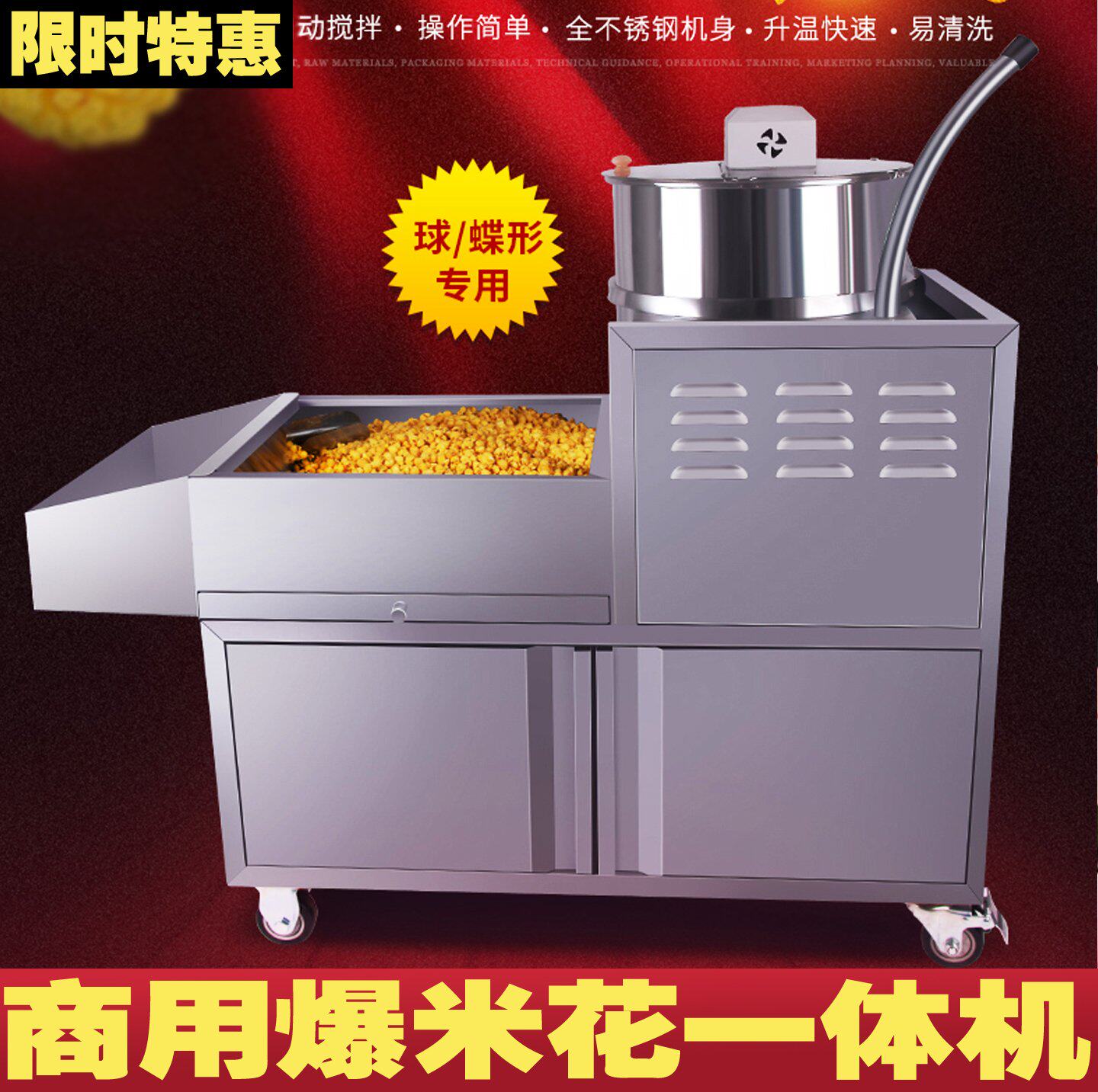 Коммерческий попкорн машины пола полное -Автоматический газ Новый C -Ball -образный газовый попкорн X Машина Bud Rice Explosion Machine