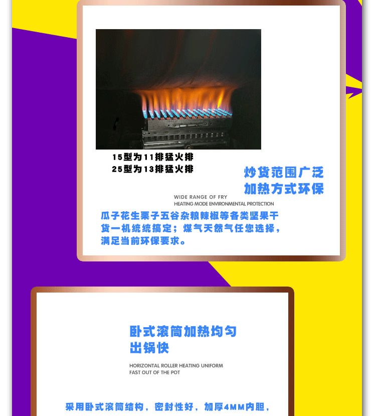 Маленькие и простые 15 видов жареных семян, арахисов, густой сахарной каштановой машины с жареным зерновым зерновым