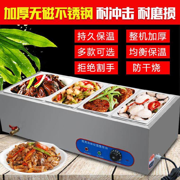 Изолированный стол для продажи риса для фаст-фуда, нагревательная плита-буфет из нержавеющей стали, коробка для тушеной еды с термическим электрическим нагревом, принадлежности для глубоких блюд