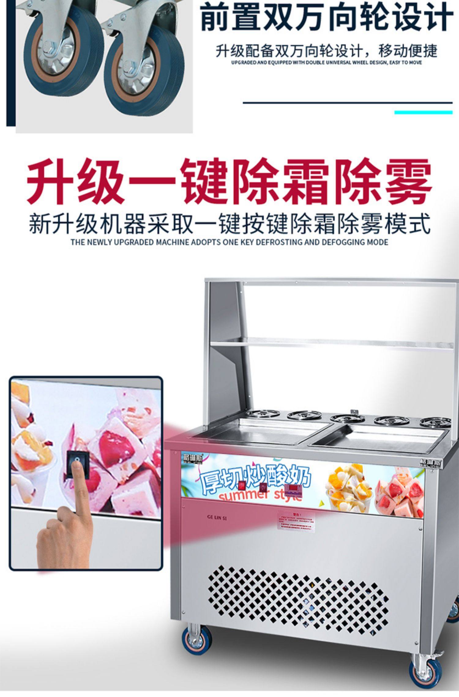 Новая машина для приготовления жареного йогурта с толстыми нарезками, коммерческая палатка, машина для приготовления жареного льда, интернет-знаменитости, рулет с жареными фруктами, мороженое, интеллектуальный контроль температуры