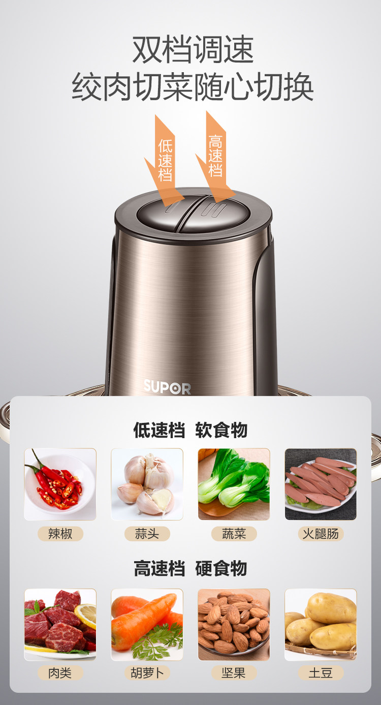 Supor Meat Straming Machine 2l Home Electric Мясовое мясо многофункциональное блюдо с миксерами Дополнительная фрагментированная блюда для блюд