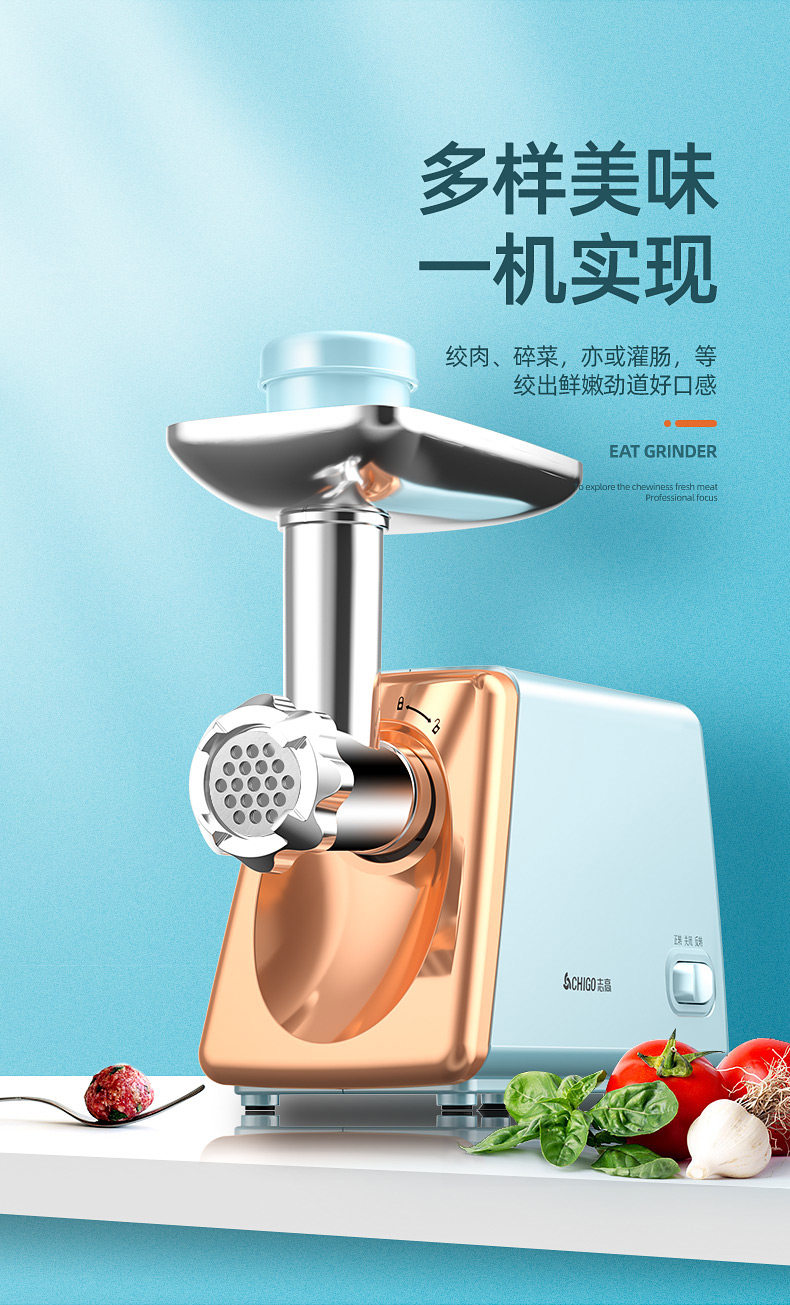Чигао мясной шлифовальная машина Коммерческая крупная мощность, скалопная колбаса с высокой силой, домашнее использование мяса, измельченная овощная колбаса позвоночная клизма