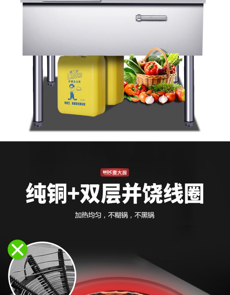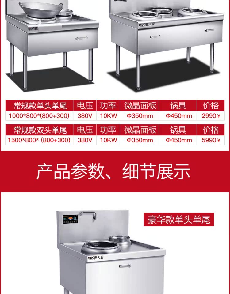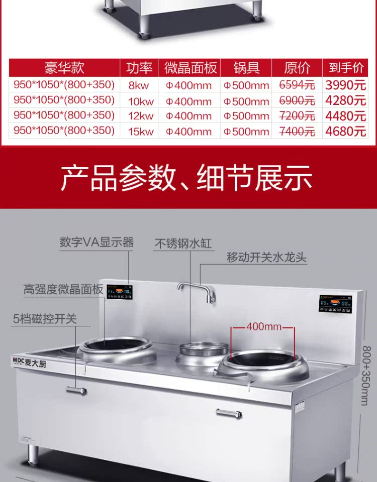 Mai Kitchen Munuading High -мощная индукционная плита 15 кВт с двойной грудью маленькой жареные печи отель