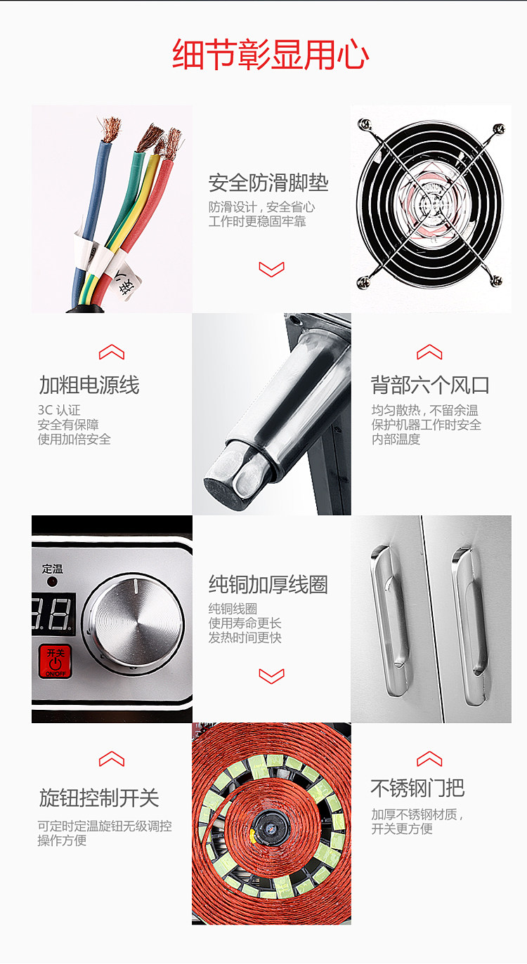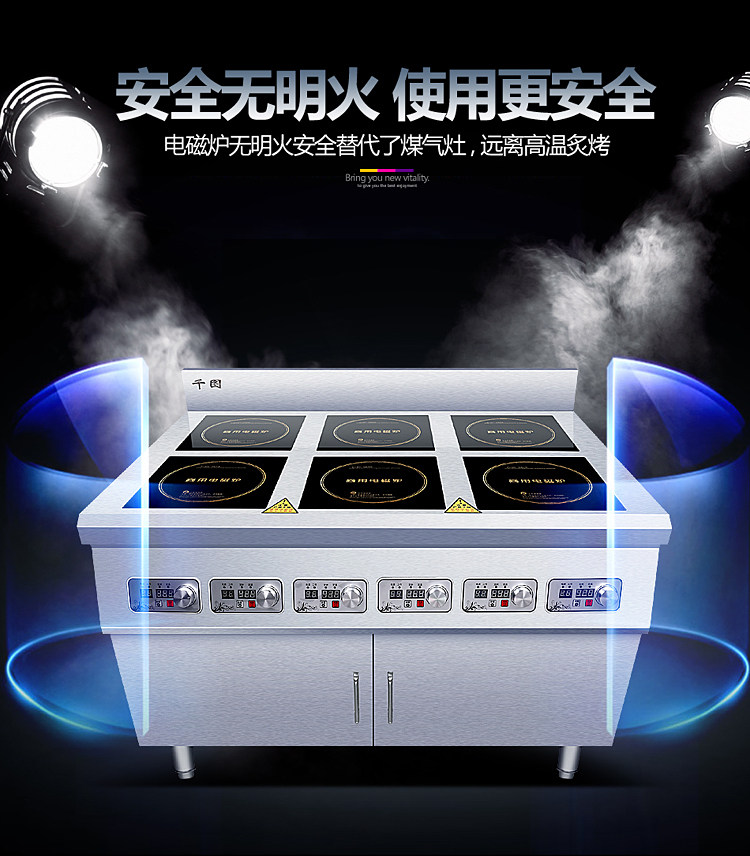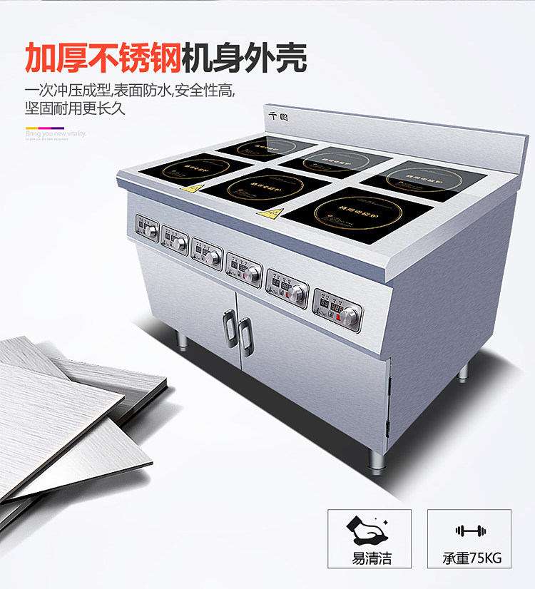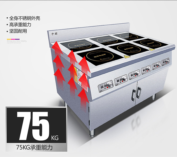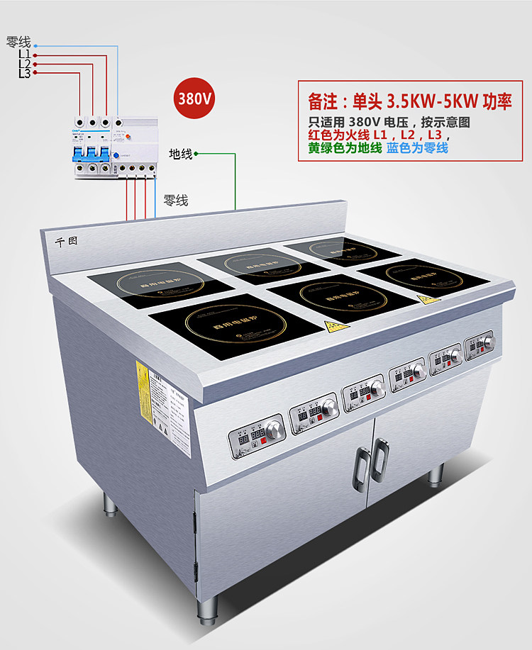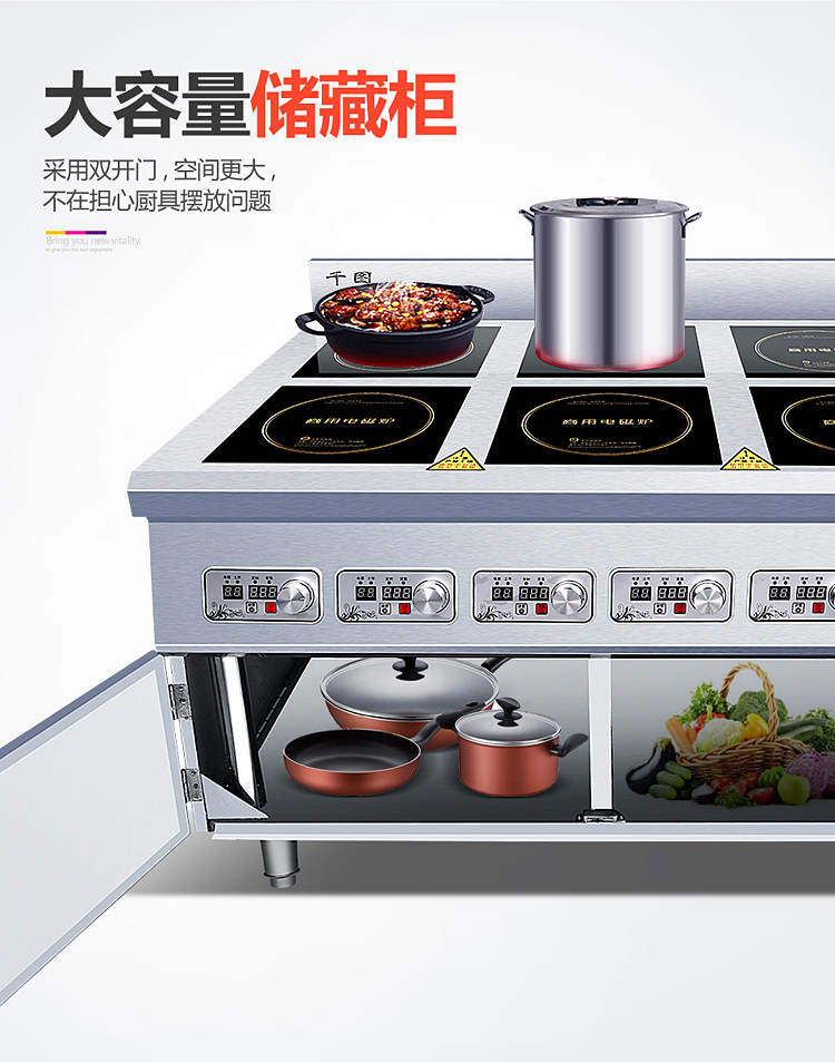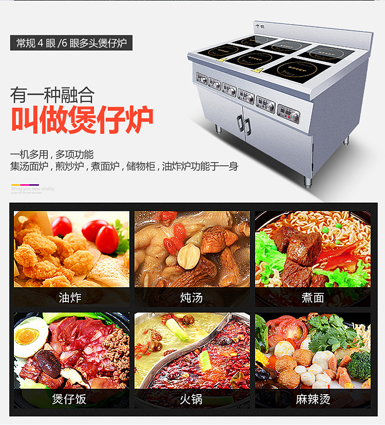 Коммерческая шестиугольная электромагнитная глиняная печь Вертикальный шкаф Большинство с четырьмя головами высокой мощности 3500W4 Глаза 6 Глаза пряные кулинарная электромагнитная печь
