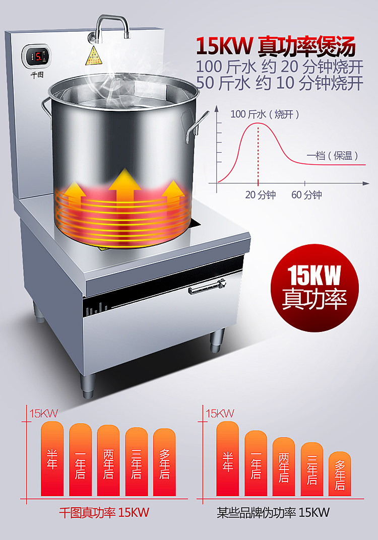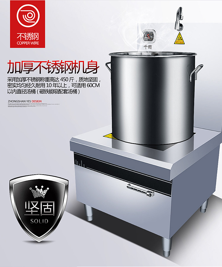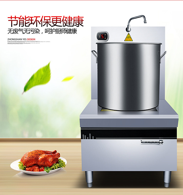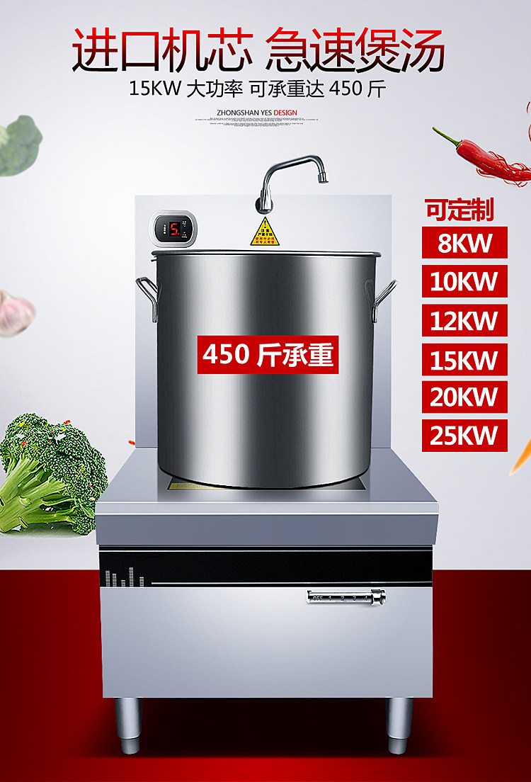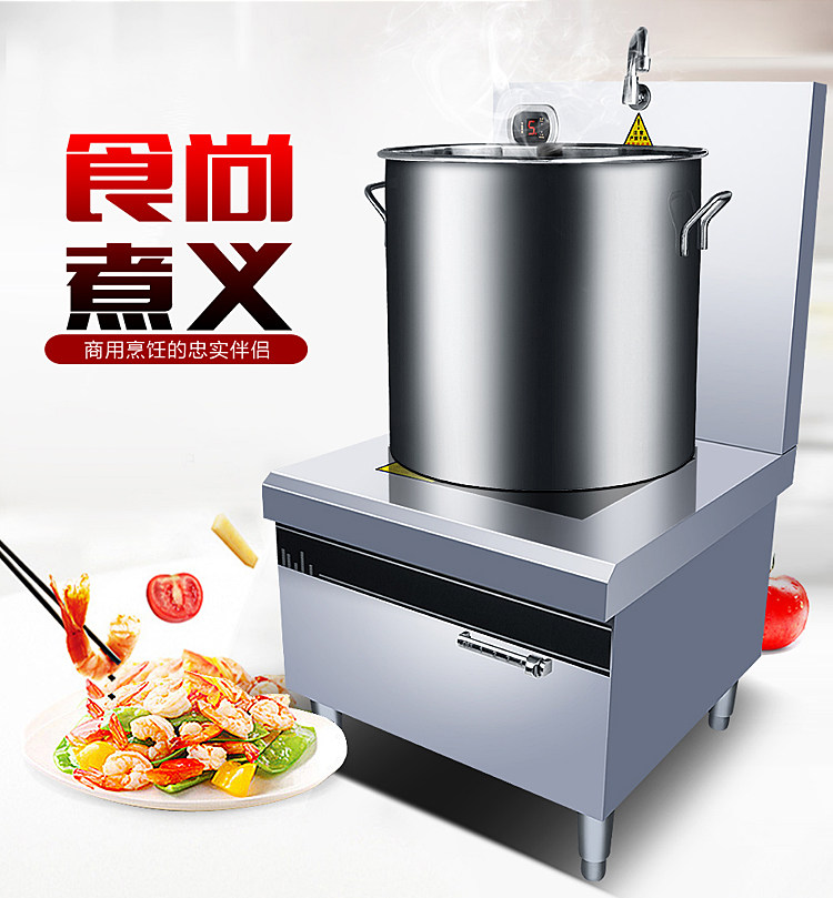 Коммерческая высокая мощная электромагнитная плоскость суп -печь 8/10/15 кВт кафетерий Ресторан Электрический суп печь кипящая вода короткая горшка подвесная суп